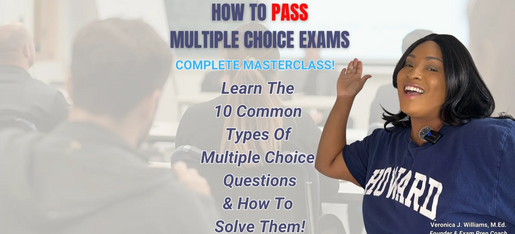 Growth & Transformation begins with learning new strategies that impact individual performance and enhance confidence. Book a Discovery Call with Founder, Certified Teacher, & Exam Prep Coach Veronica J. Williams, M.Ed. to discuss how Help Me Pass can help your team and students transform through strategic learning!